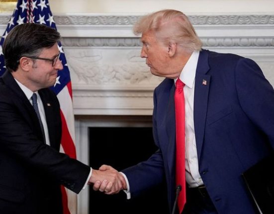 Speaker Mike Johnson, R-La., urged House Republicans on a lawmaker-only call to rally behind President Donald Trump after the commander in chief struck